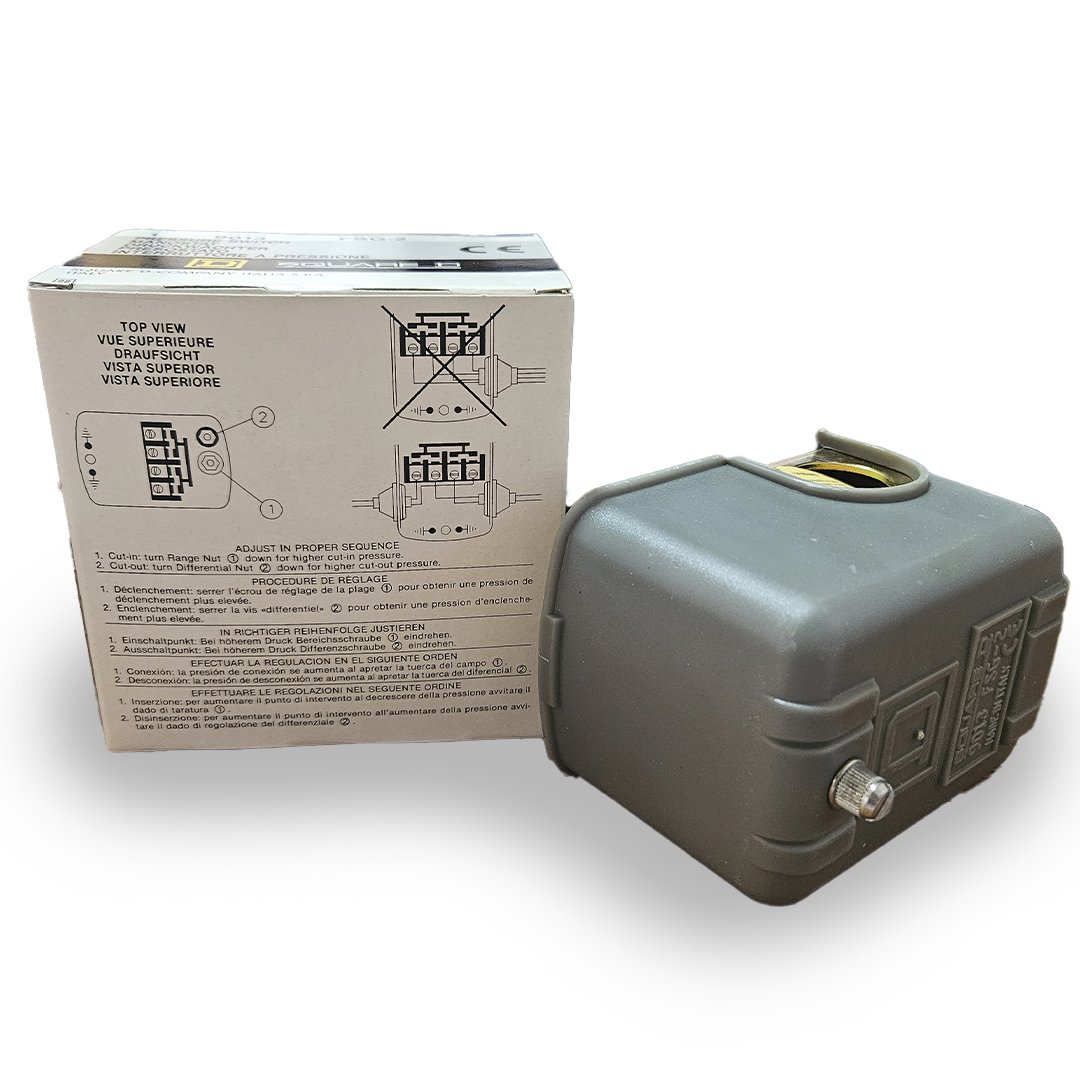 Este presostato electromecánico es el componente esencial para el control de encendido y apagado de su bomba de agua, asegurando un funcionamiento eficiente en sistemas hidroneumáticos.